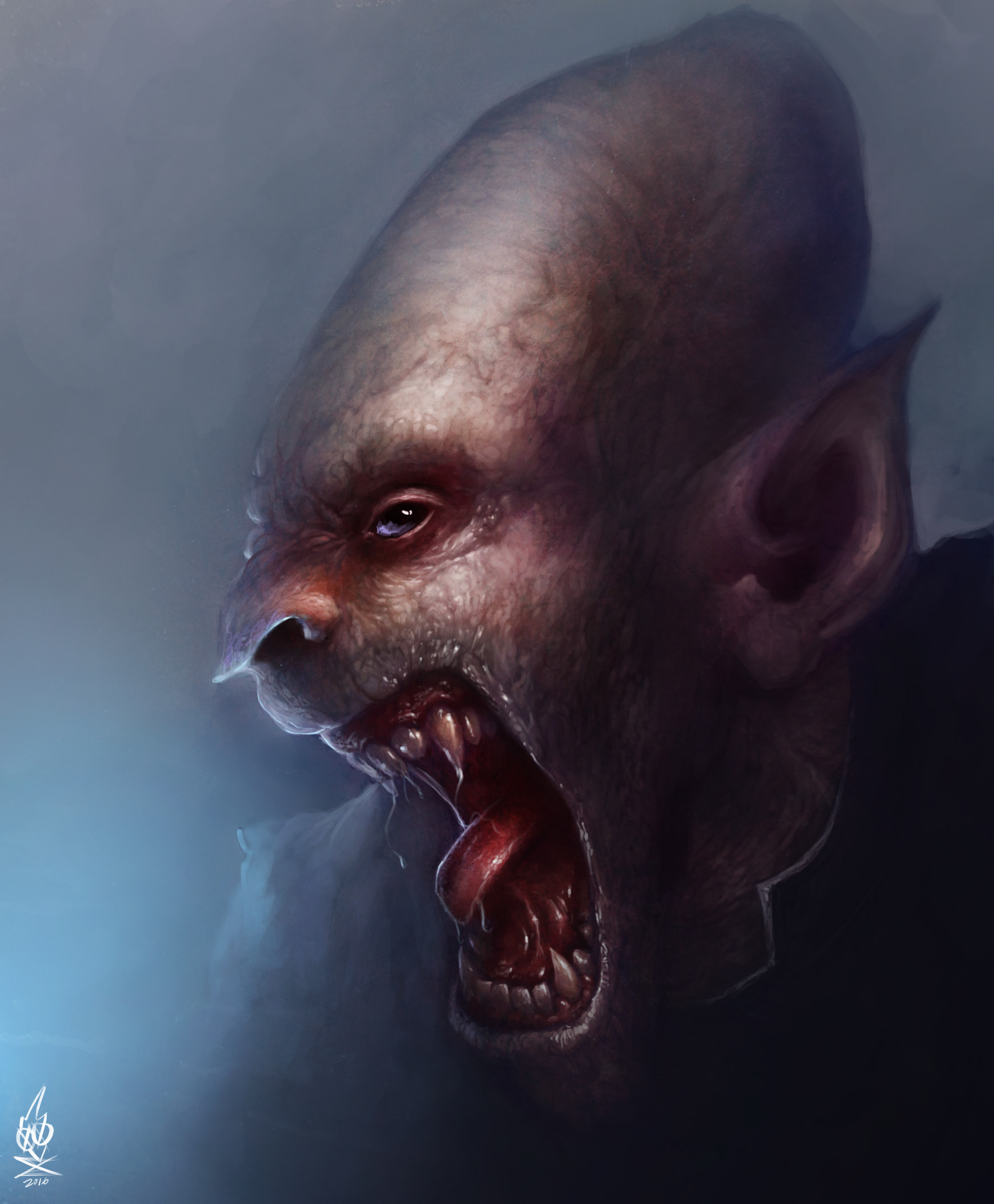 A monstrous vampire digitally painted to explore detail work. It became the cover of the August issue of Devolution Z The Horror Magazine.